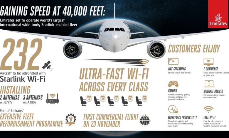 طيران الإمارات تزوّد 232 طائرة من أسطولها بخدمة “ستارلينك”