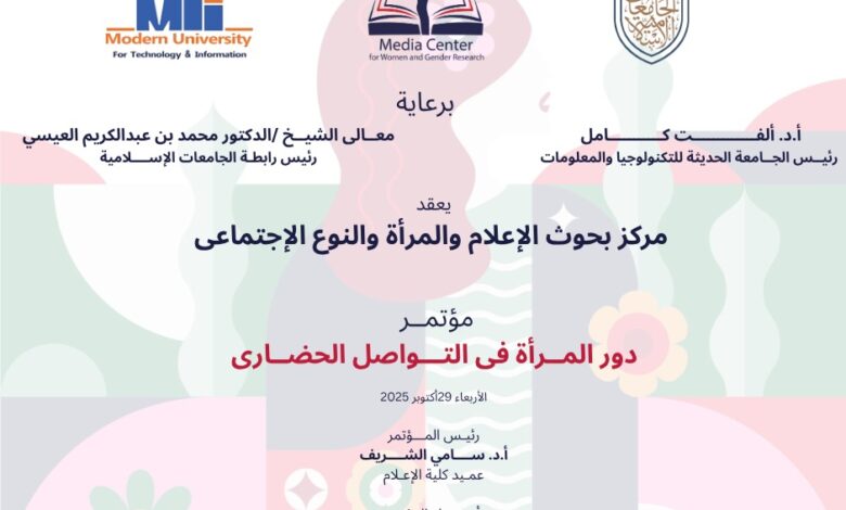 تنطلق بعد غدٍ الأربعاء فعاليات مؤتمر “دور المرأة في التواصل الحضاري” الذي ينظمه مركز بحوث الإعلام والمرأة والنوع الاجتماعي بكلية…
