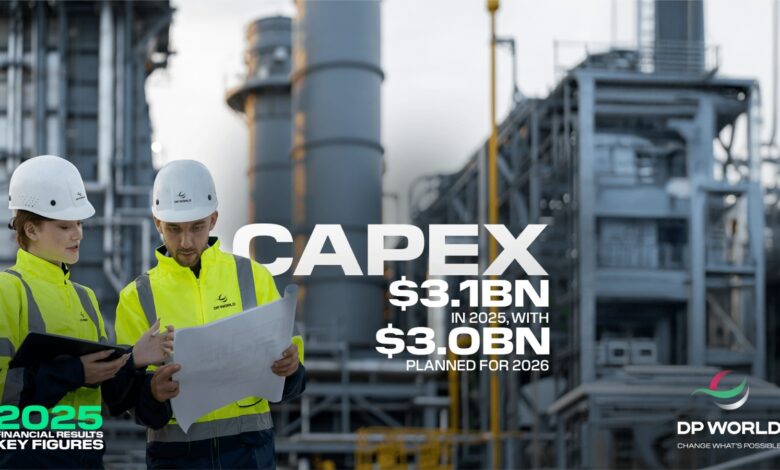 واستثمرت “دي بي ورلد” 3.1 مليار دولار في النفقات الرأسمالية خلال 2025 (ارتفاعاً من 2.2 مليار دولار في 2024) لدعم التوسع في الطاقة الاستيعابية وتعزيز الإنتاجية على مستوى العالم. كما ارتفعت القدرة الاستيعابية للموانئ إلى 109 ملايين حاوية نمطية قياس 20 قدماً. وتبلغ ميزانية النفقات الرأسمالية للمجموعة لعام 2026 نحو 3 مليارات دولار، مع التركيز على المشاريع ذات الأولوية، بما يشمل جبل علي، والأحواض الجافة العالمية، وتونا تيكرا (الهند)، ولندن غيتواي (المملكة المتحدة)، وندايان (السنغال)، وجدة (المملكة العربية السعودية).